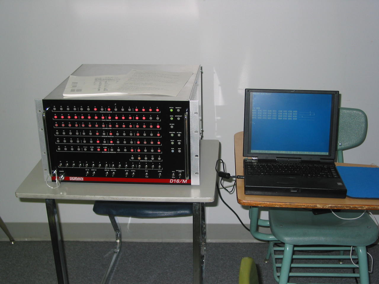 The Doran Engineering D16/M Computer Date: 07/09/2003 A 16-bit minicomputer designed and built by John Doran. The laptop is being used as a console terminal.